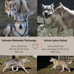 Deckmeldung vom20.01.2025 Züchter: von den Fichtelwölfen Wurftag: 27.03.2025 Aktueller Status: Der Wurf ist geboren Name der Hündin: Chumani's Una Leia Name des Rüden: Khalibisnya Maginwulf Rio